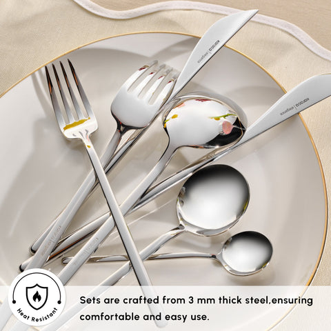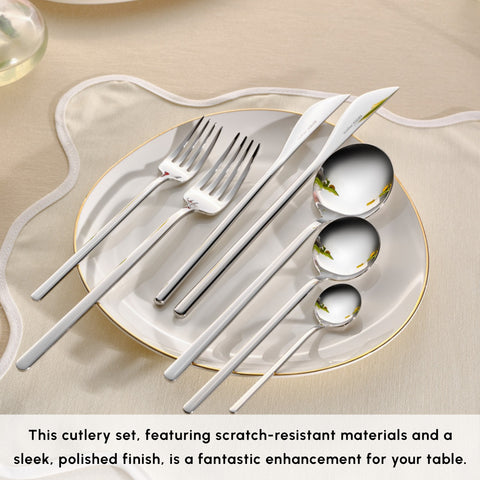 Karaca Focus 84-Piece Stainless Steel Cutlery Set for 12 People, Platinum