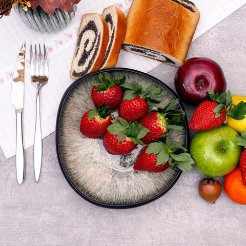Karaca Galactic Reactive Glaze Pasta Bowl Set for 4 People, 21cm, Black Multi