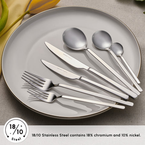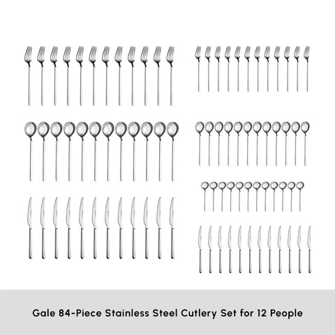 Karaca Gale 84-Piece Stainless Steel Cutlery Set for 12 People, Platin