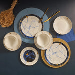Karaca Gem 24-Piece Porcelain Dinner Set for 6 People, White Gold Blue