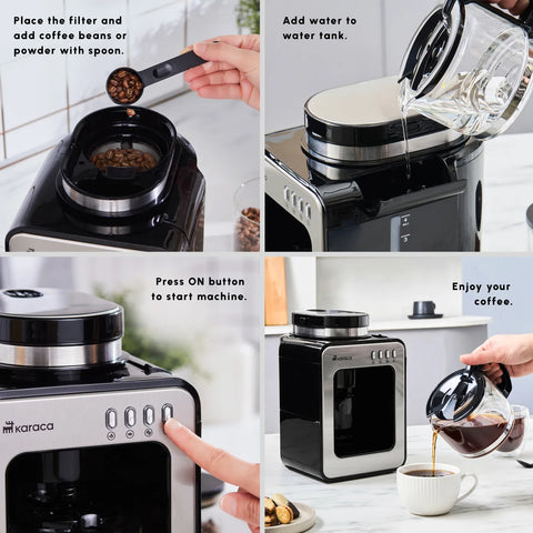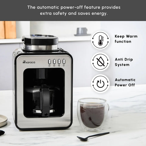 Karaca Grindmaestro Filter Coffee Maker with Built-in Grinder, 0,5L, 600W, Inox