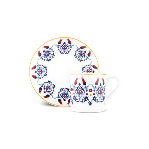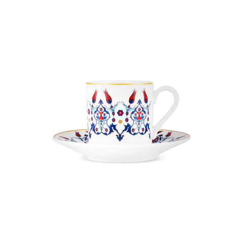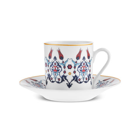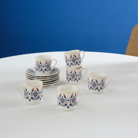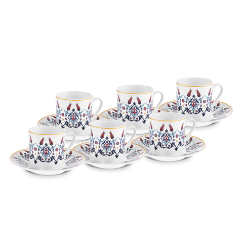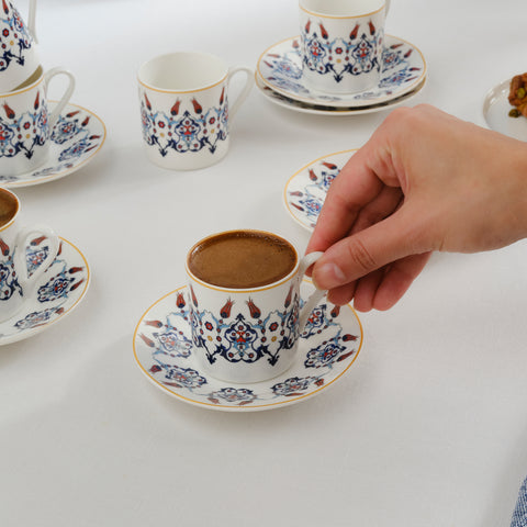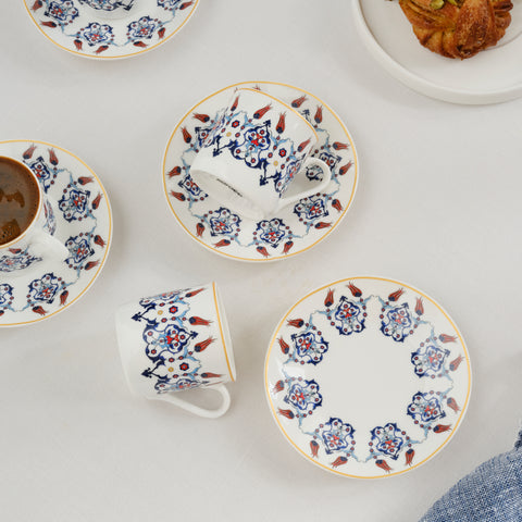 Karaca Haliç 12-Piece Bone China Turkish Coffee Cup Set for 6 People, 80ml, Multi