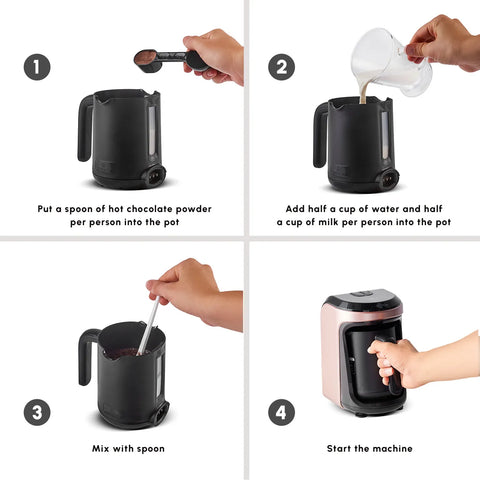 This Electric Turkish Coffee Maker is great for making roasted Turkish coffee, Turkish coffee with milk, hot chocolate with milk, and instant coffee with milk in ideal consistency.