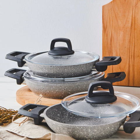 Karaca Hira Biogranite Shallow Stock Pot Set, 6 Piece, Grey