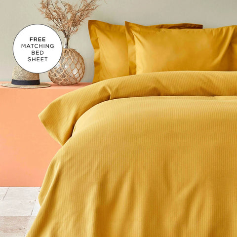Karaca Home Back To Basic 100% Turkish Cotton Duvet Cover Set with Bed Sheet, Single, Mustard