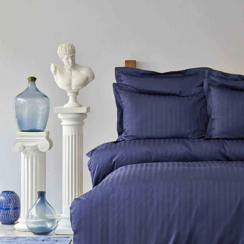 Karaca Home Charm Bold 100% Turkish Cotton Duvet Cover Set with Bed Sheet, Double, Navy Blue