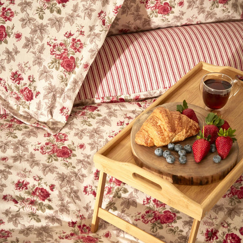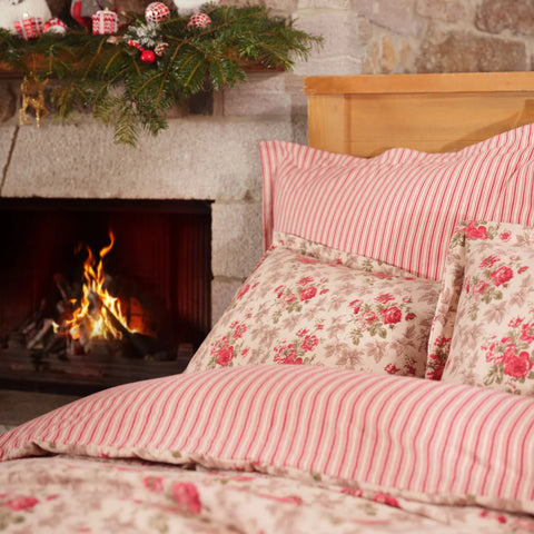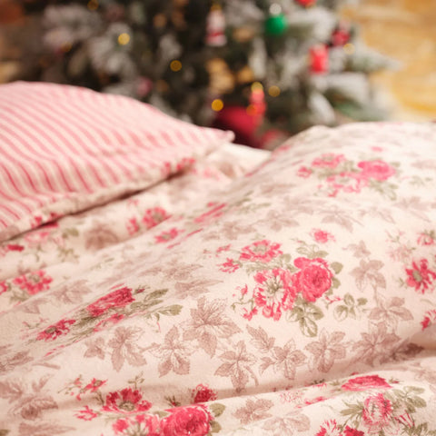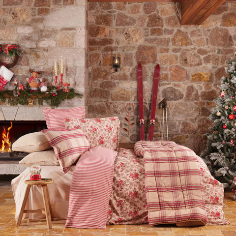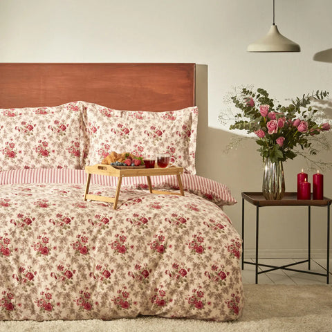 Karaca Home Luis 100% Turkish Cotton Flannel Duvet Cover Set with Bed Sheet, Double, Red Multi