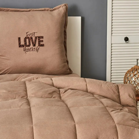 Karaca Home Motto 100% Turkish Cotton Comfort Set, Single, 135cmx200cm, Beige