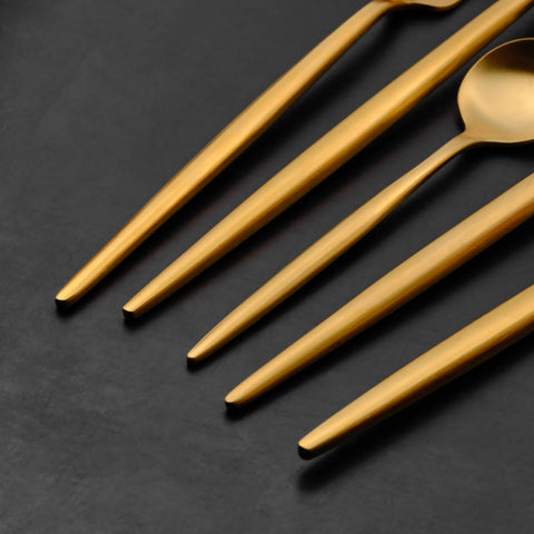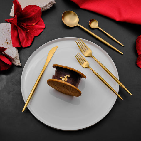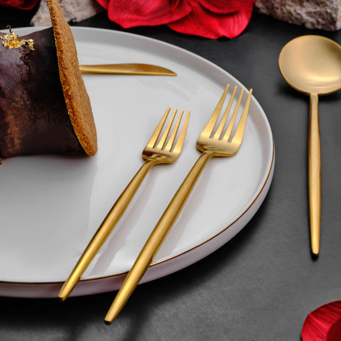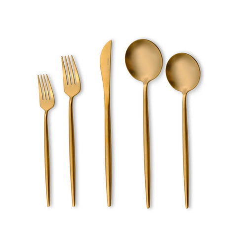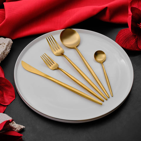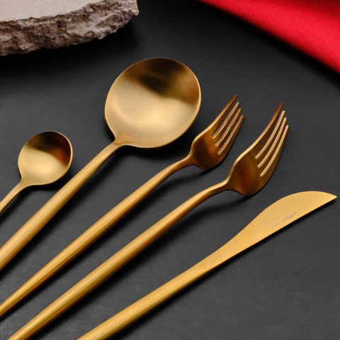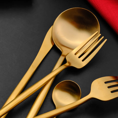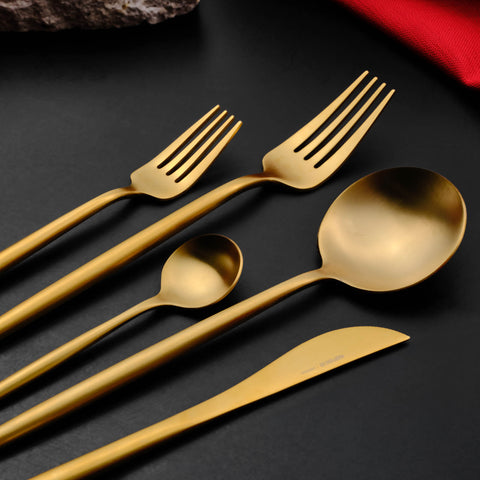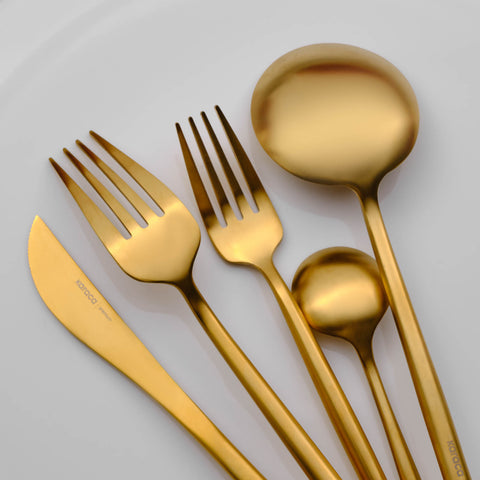 Karaca Jupiter 60-Piece Stainless Steel Cutlery Set for 12 People, Matte Gold