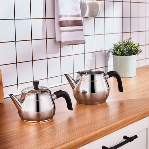Karaca Induction Based Teapot Set allows you to brew your tea at the exact setting and taste with its 1 liter teapot and 1.75 liter waterer. It is quite ideal to accompany your pleasure during the break times of the day. While adding a unique elegance to your kitchen with its modern design, sparkle and color, it offers a healthy and long-lasting use thanks to its stainless steel structure.