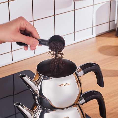 Karaca Stainless Steel Induction Teapot Set, Medium, Black Silver