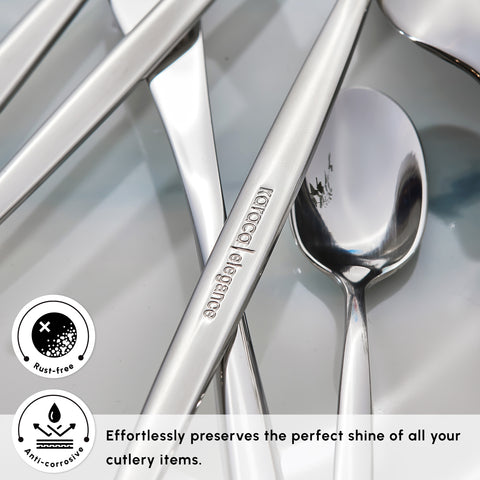 - Dishwasher Safe: Effortlessly maintains the pristine shine of your cutlery set, dishwasher safe, helping you time and effort when washing and cleaning up after meals.