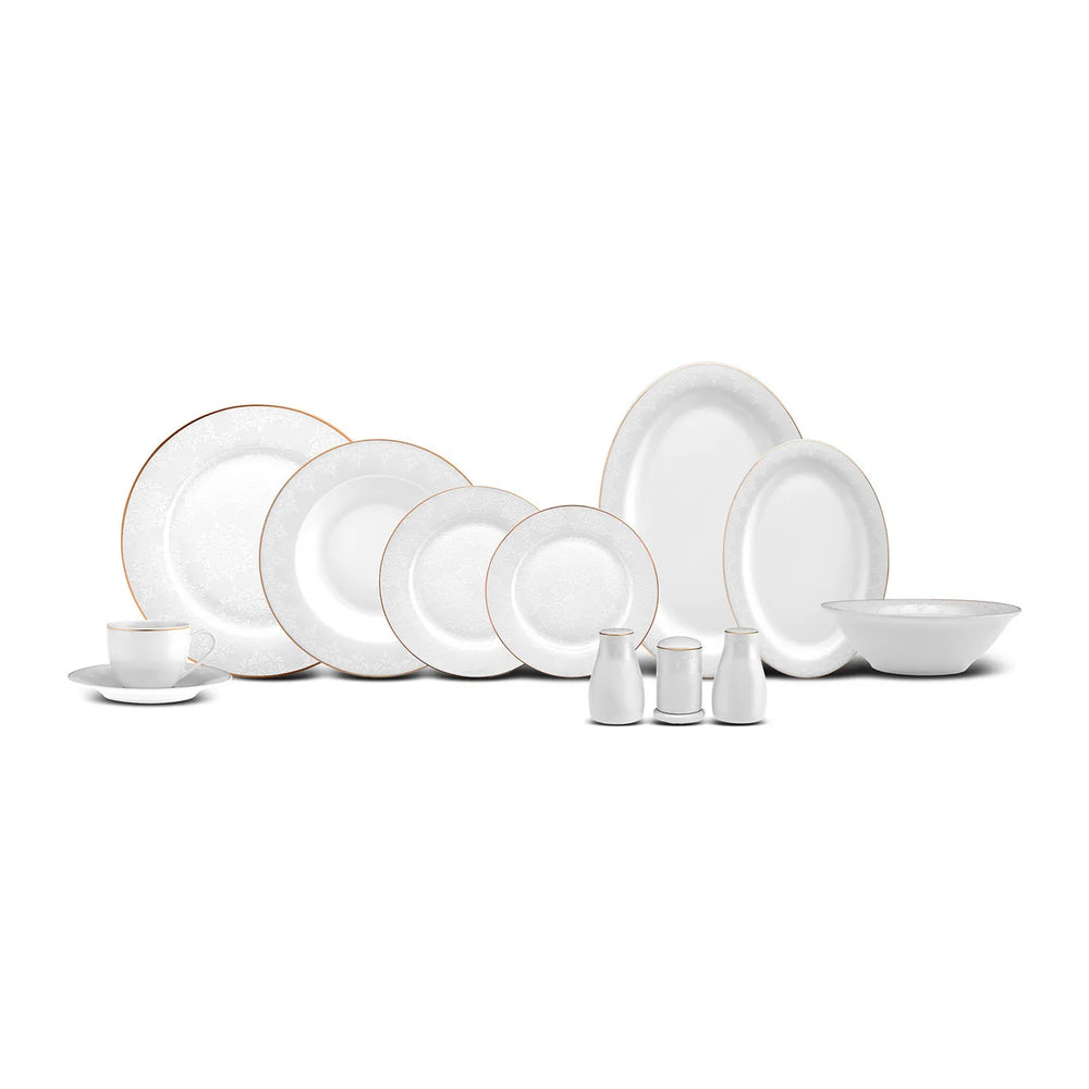 Karaca Lord 74 Piece Bone China Dinner Set for 12 People, White Gold