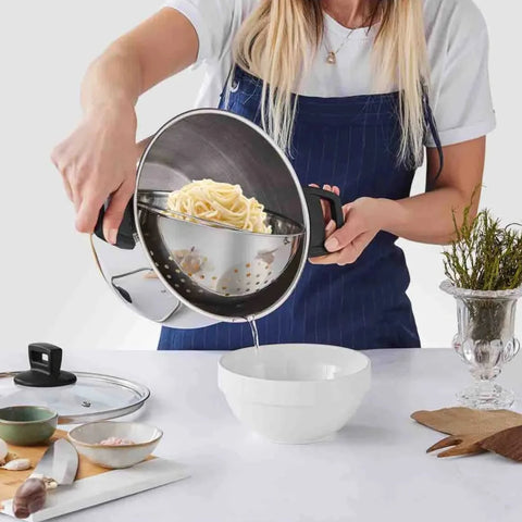 Karaca Love of Kitchen Stainless Steel Induction Pasta Pot and Steamer with Lid, 24cm, Silver