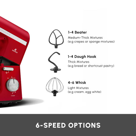 Karaca Mastermaid Chef Pro Zero Side Tech Stand Mixer, 5L, 1750W, Imperial Red