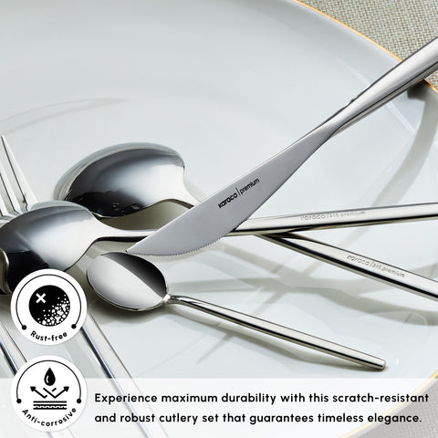 Karaca Mild 84-Piece 316+ Stainless Steel Cutlery Set for 12 People, Silver
