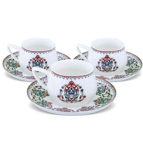 Karaca Nakkaş 12-Piece Porcelain Espresso Turkish Coffee Cup Set for 6 People, 100ml, Multi