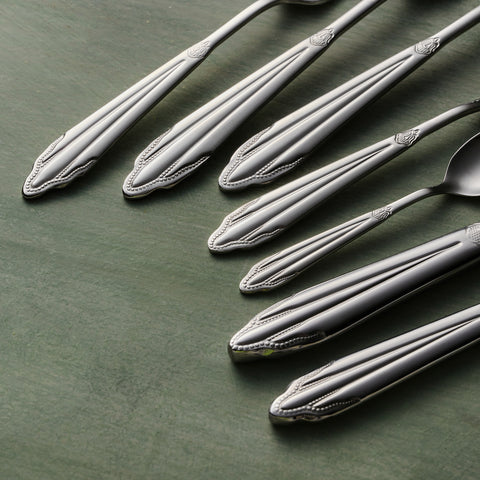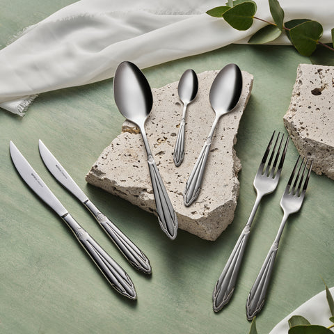 Karaca New Mantilla 84-Piece Stainless Steel Cutlery Set for 12 People, Platin