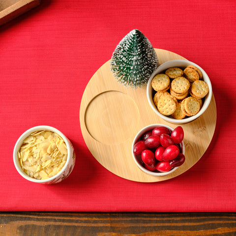 Karaca New Year Christmas 3-Piece Bamboo Santa Claus Snack Bowl, Multi