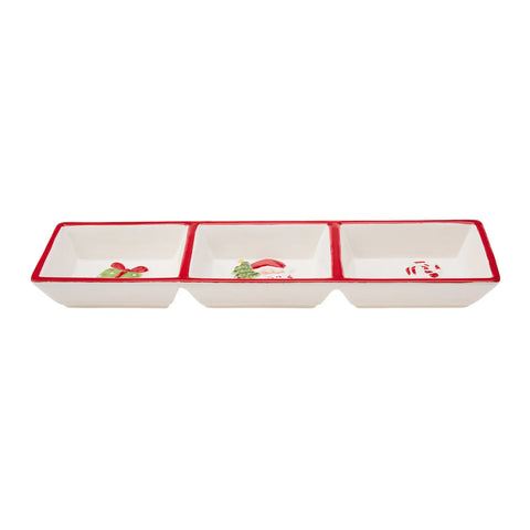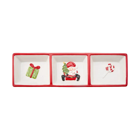 Karaca New Year Christmas Hoho Ceramic 3-Compartment Snack Bowl, 25cm, Multi