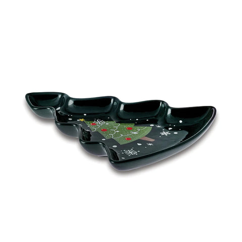 Karaca New Year Christmas New Generation Bone Golden Line Christmas Tree Decorative Plate, 21cm, Black Green