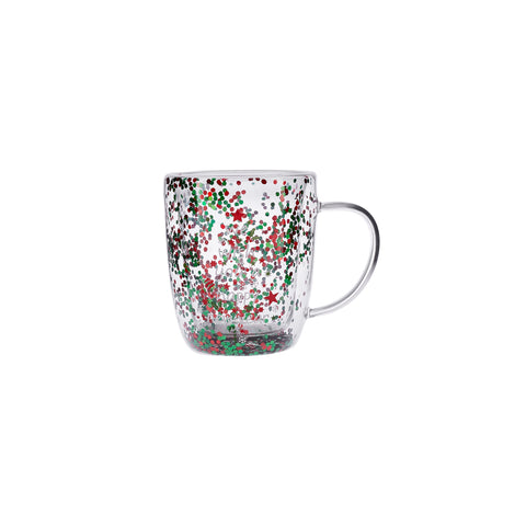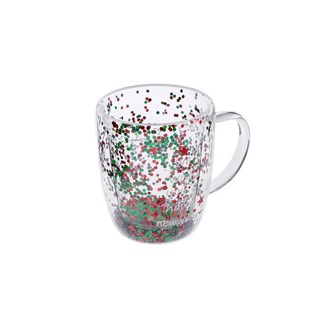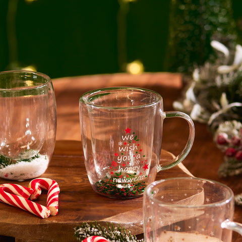 Karaca New Year Christmas Pia Double Trimmed Tree Mug, 350ml, Clear