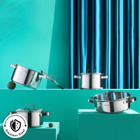 Introducing Noa PowerSteel 316+ Stainless Steel Cookware Set in a sleek silver design, a true powerhouse in your kitchen. This complete cookware collection includes essential pieces, providing you with a versatile and reliable set to elevate your culinary creations.