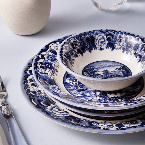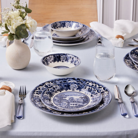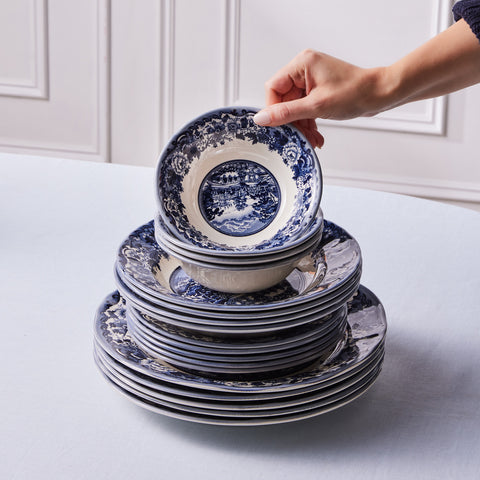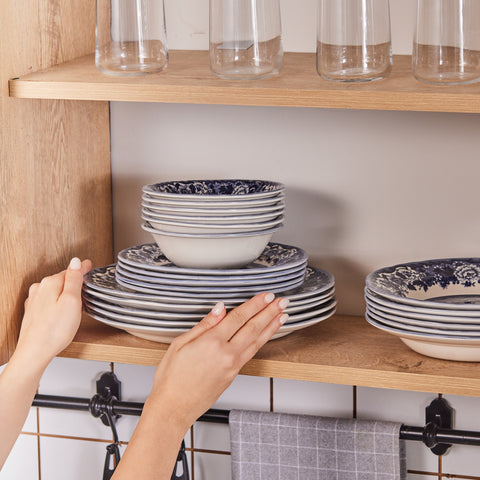 Karaca Old Town 24-Piece Stoneware Dinner Set for 6 People, Blue