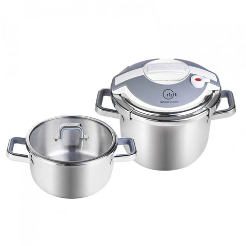 Karaca Orbit 2-Piece Stainless Steel Induction Pressure Cooker Set, 4L+6L, White Silver