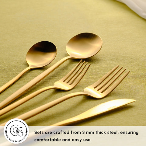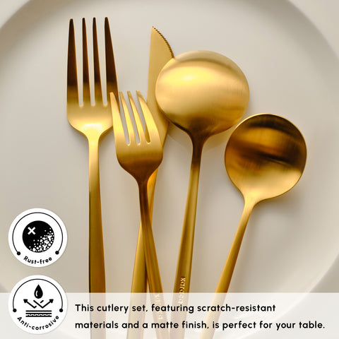 Karaca Orion 30-Piece Stainless Steel Cutlery Set for 6 People, Matte Gold