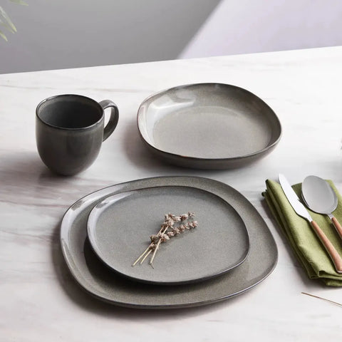 Karaca Petra 16 Piece Reactive Glaze Dinner Set for 4 People, Anthracite Multi