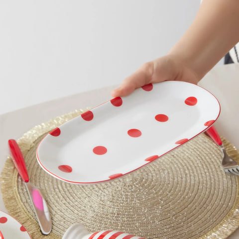 Karaca Polka Dot Porcelain Serving Platter, 26cm, White Multi