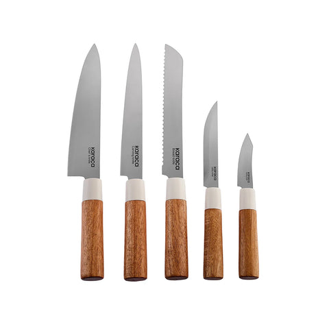 Karaca Pure Knife Block Set and Kitchen Utensil Set, 11 Piece, Wood White