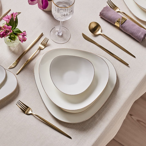 Karaca Fine Pearl Extra Tristan 62-Piece Dinner Set for 12 People, White Gold