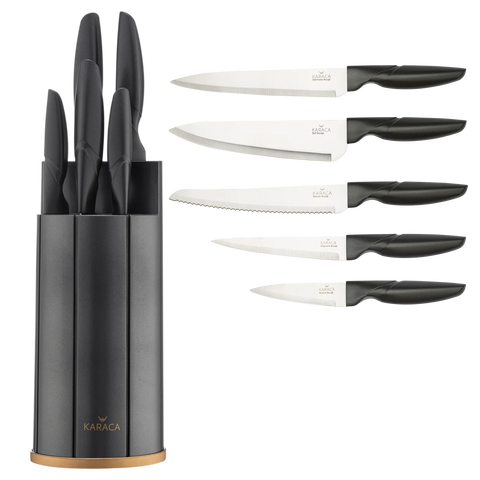 Karaca Retro 5 Piece Knife Block Set, Anthracite
