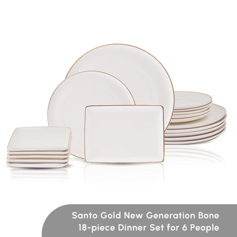 Karaca Santo 18-Piece Bone China Dinner Set for 6 People, White Gold