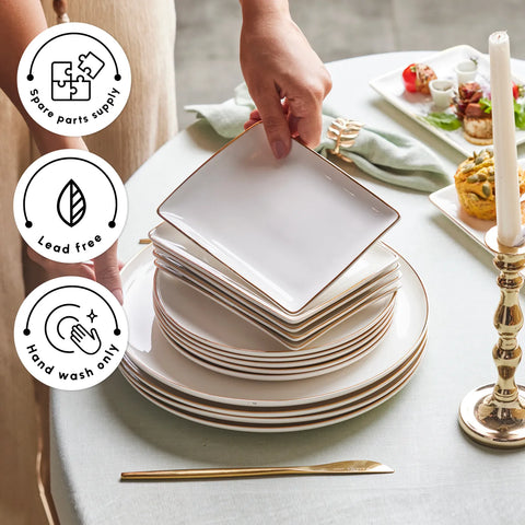 Immerse yourself in the most lavish dining experience possible with 6 generously sized dinner plates (28 cm, 11”), 6 side plates (20.8 cm, 8.1"), and 6 rectangular plates (18.3 cm, 7.2"). Designed for 6 diners, our dinner set is perfect for family gatherings and special occasions.