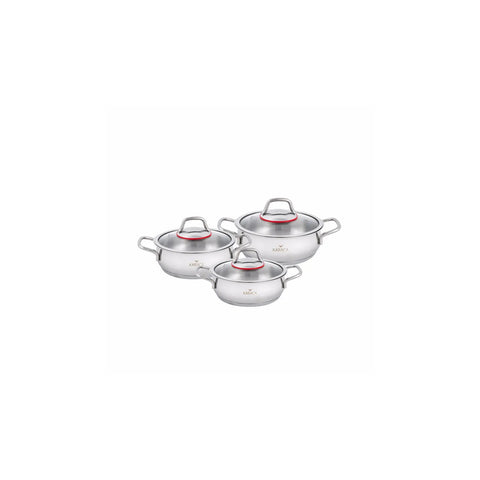 Karaca Sarıyer 6-Piece Stainless Steel Induction Cookware Set, Silver Red