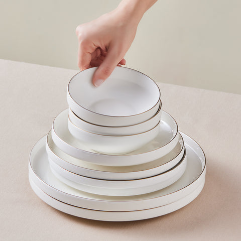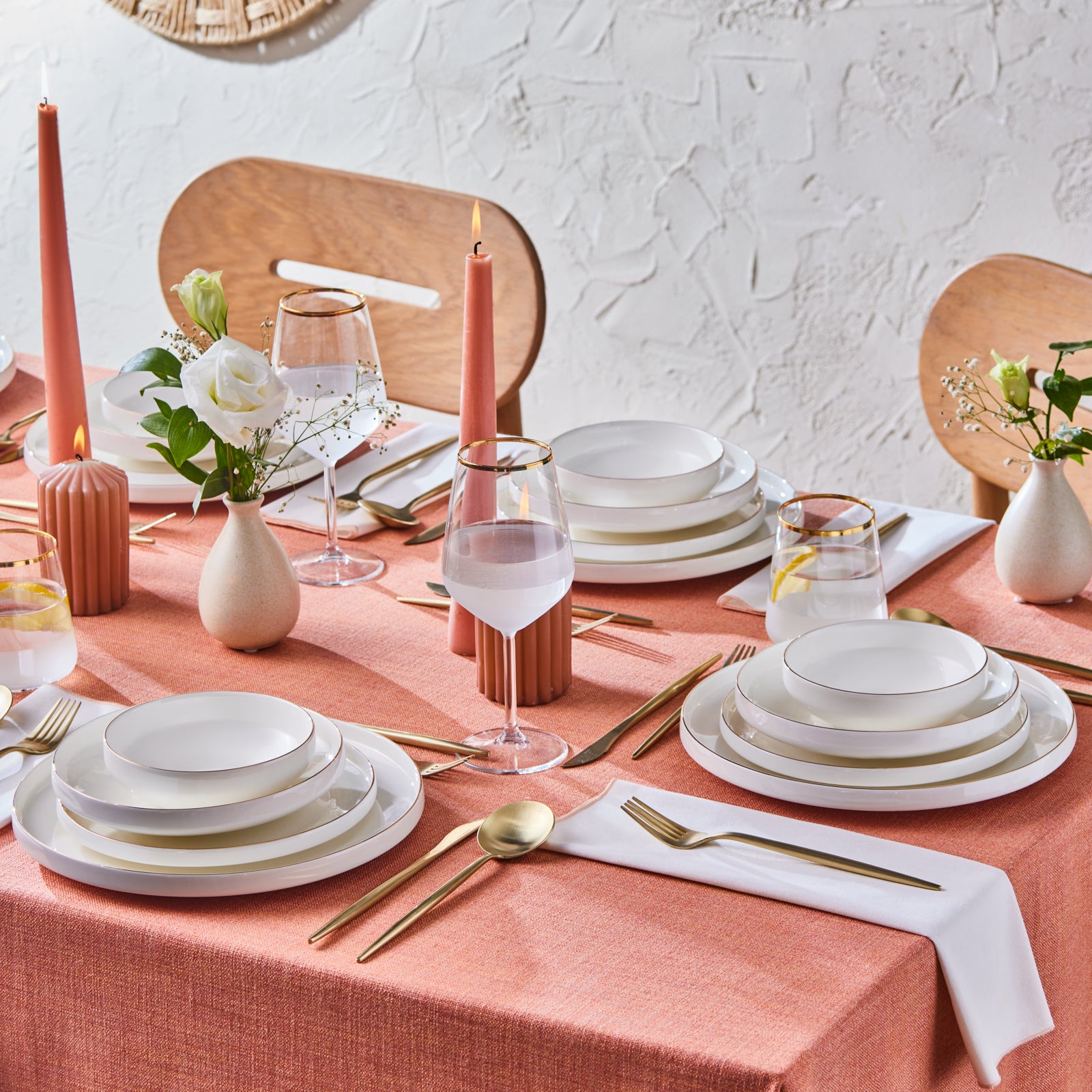 Karaca Stream Bone China Saturn 24-Piece Dinner Set for 6 People, Gold