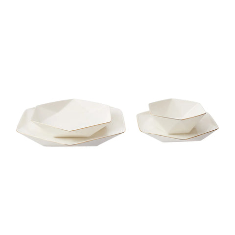 Karaca Streamline Esquina 24-Piece New Generation Bone Dinner Set for 6 People, White Gold