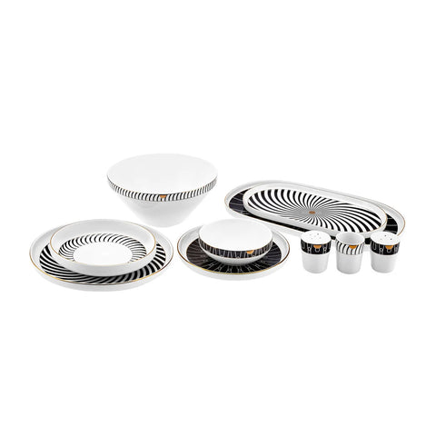 Karaca Stream Bone China Girdap 59-Piece Dinner Set for 12 People, White Black