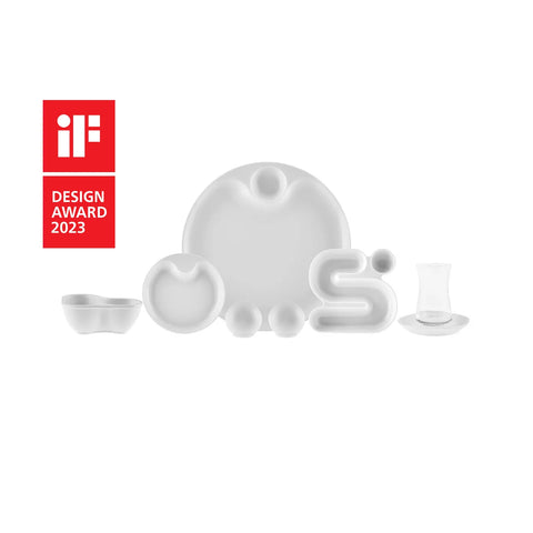 Karaca Stream Pure Salsa 26-Piece Fine Bone Serveware Set for 6 People, White