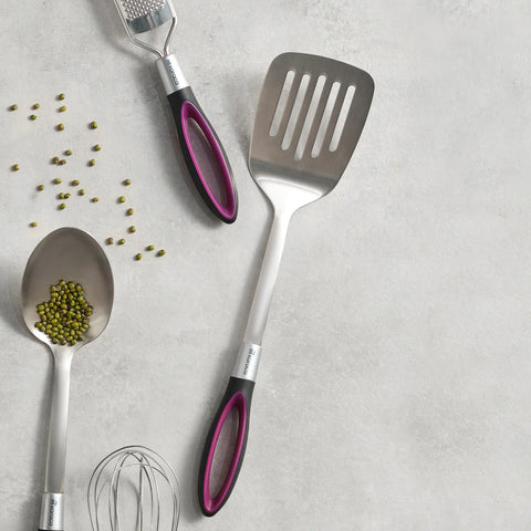 Karaca Swan Stainless Steel Slotted Spatula, 20cm, Burgundy