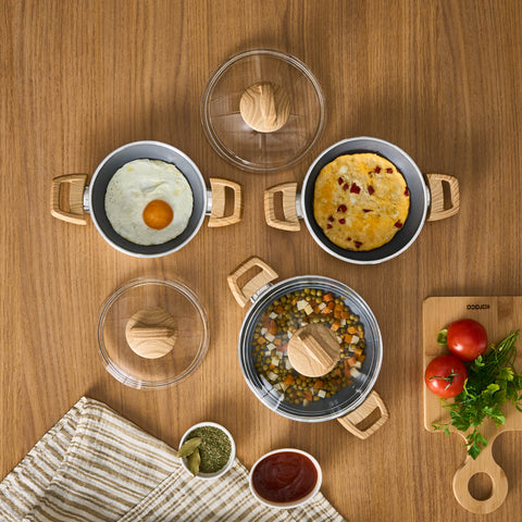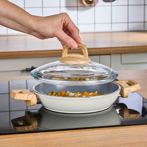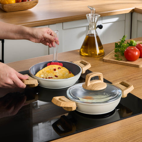 Karaca Swiss Crystal 6 Piece Non-Stick Induction Shallow Cookware Set, Creamy