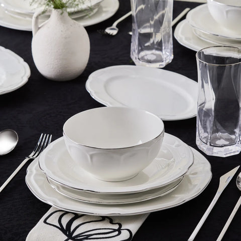 Karaca Tobias 56-Piece Bone China Dinner Set for 12 People, White