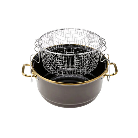 Karaca Troy Enamel Induction Stockpot with Lid, 24cm, Black Gold