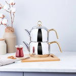 Karaca Urban Stainless Steel Induction Teapot Set, Medium, Silver Black
