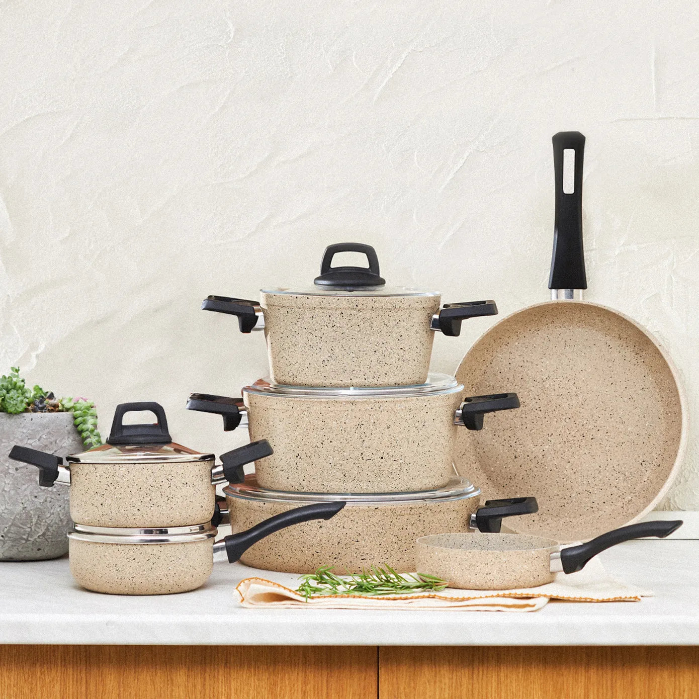 Karaca Vincent Biogranite 12-Piece Cookware Set, Brown Black