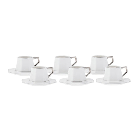 Karaca Zeher 12-Piece Porcelain Espresso Turkish Coffee Cup Set for 6 People, 90ml, White Silver