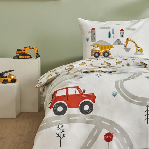 Karaca Home Young Race 100% Cotton Fitted Single Duvet Set, White